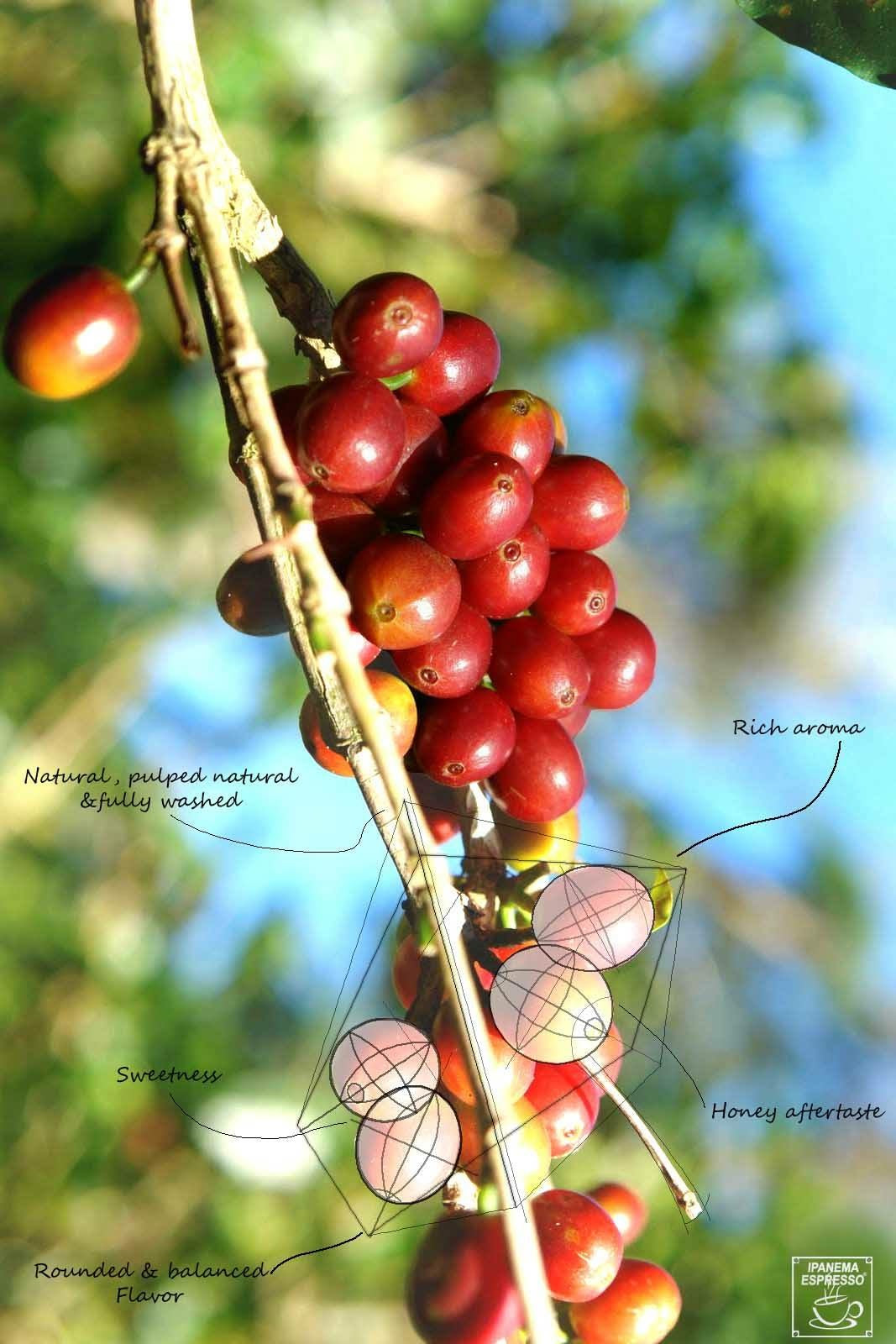 De todos estos granos de café solamente los mejores son cuidadosamente seleccionados y usados para producir IPANEMA ESPRESSO®,que según Rain Forest Alliance es reconocido como el mejor café brasileño y uno de los cuatro mejores cafés de especialidad del mundo
